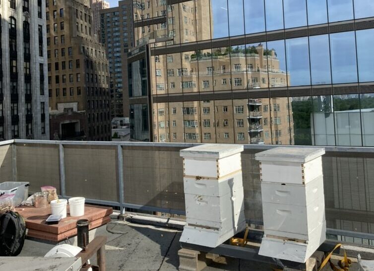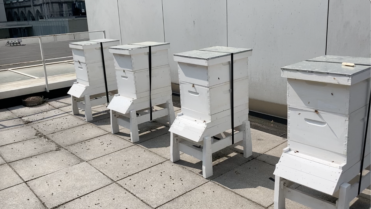 Just a few blocks south of Central Park, 4 hives are busy at work on the roof of MoMA, making honey for the lucky employees of the museum.
